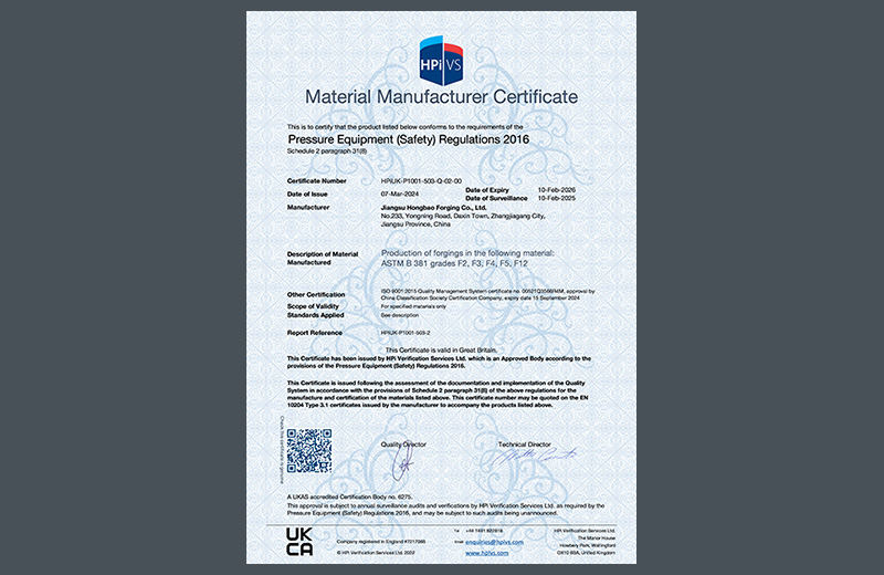 质料制造商证书