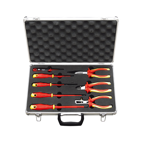 ● VDE 8" LONG NOSE PLIER ● VDE 6"DIAGONAL PLIER ● VDE 6" WIRE STRIPPER ● VDE VOLTAGE TESTER ● VDE SCREWDRIVER A2 ● VDE SCREWDRIVER A5 ● VDE SCREWDRIVER B1 ● VDE SCREWDRIVER C2 ● ALUMINIUM CASE